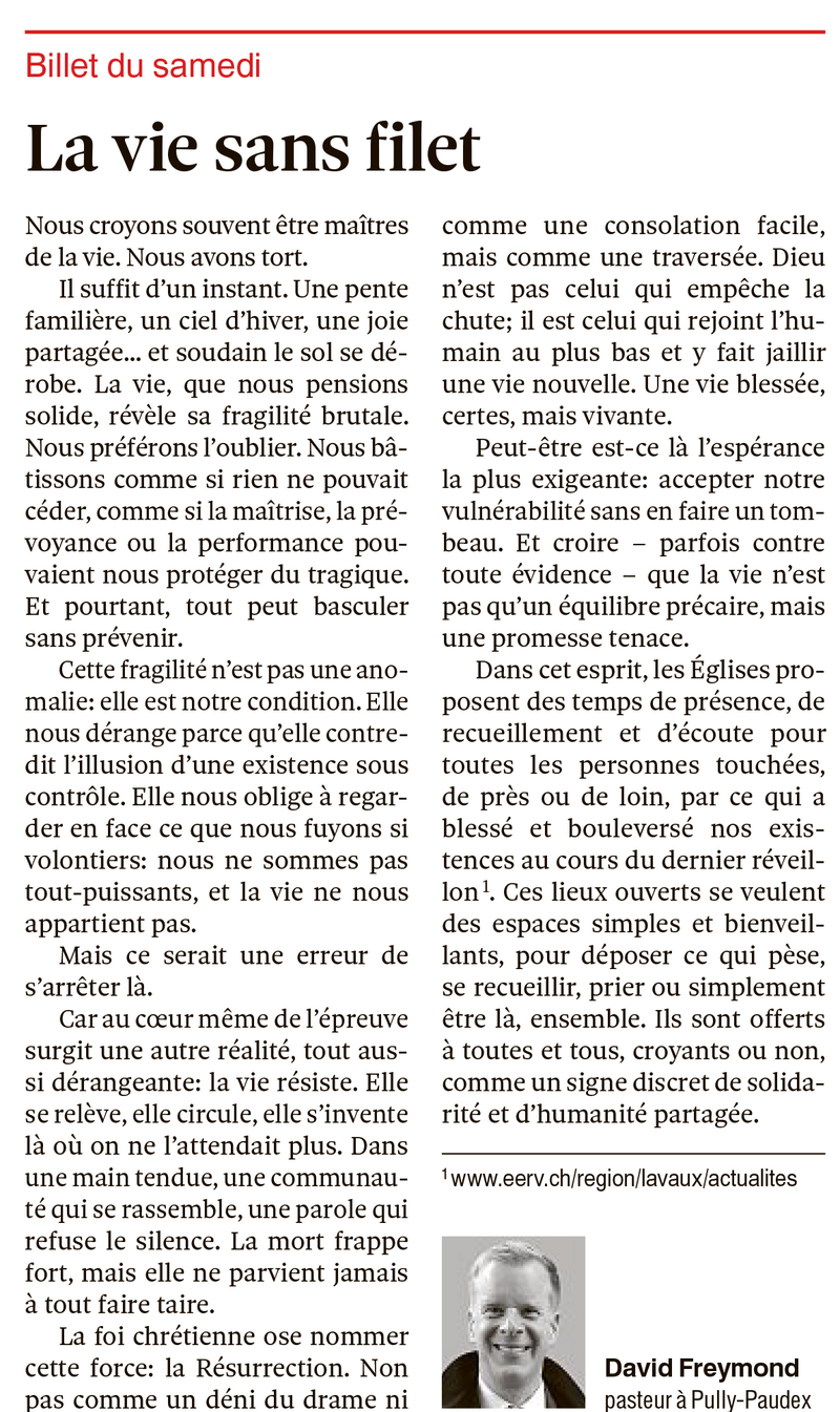 Par David Freymond, Pasteur à Pully-Paudex (EERV)