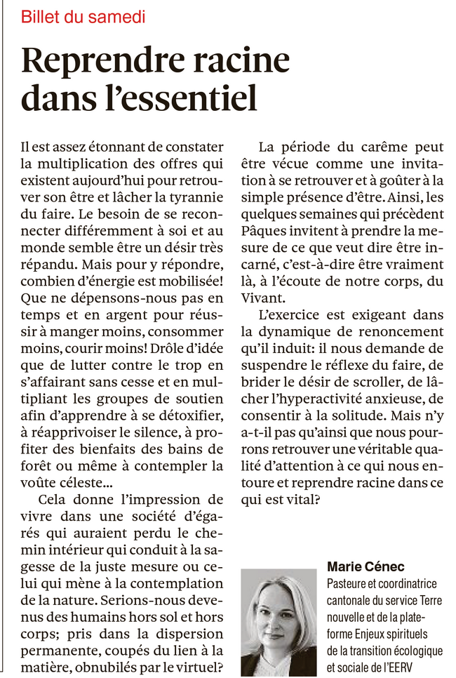 - Billet du samedi : Reprendre racine dans l'essentiel