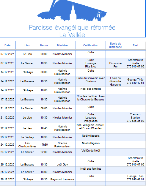 Publié leRetrouvez tous les cultes de la Paroisse EERV de la Vallée pour le mois de décembre