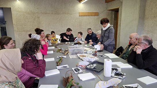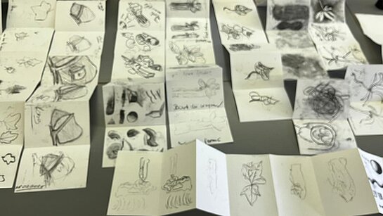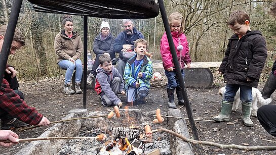 Une fois la récolte faite, les crayons sont préparés et mis au feu, pendant que l’on profite des braises pour la première grillade de l’année. Puis les artistes se mettent au travail sous la direction d’Eliane Monnier (artiste de notre région), qui leur permet de découvrir une nouvelle technique de dessin sur papier ; mais certains s’essayent même sur le visage.
