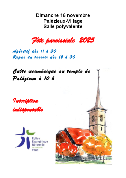 Dimanche 16 novembre à 10h, à Palézieux, culte suivi de la fête paroissiale.