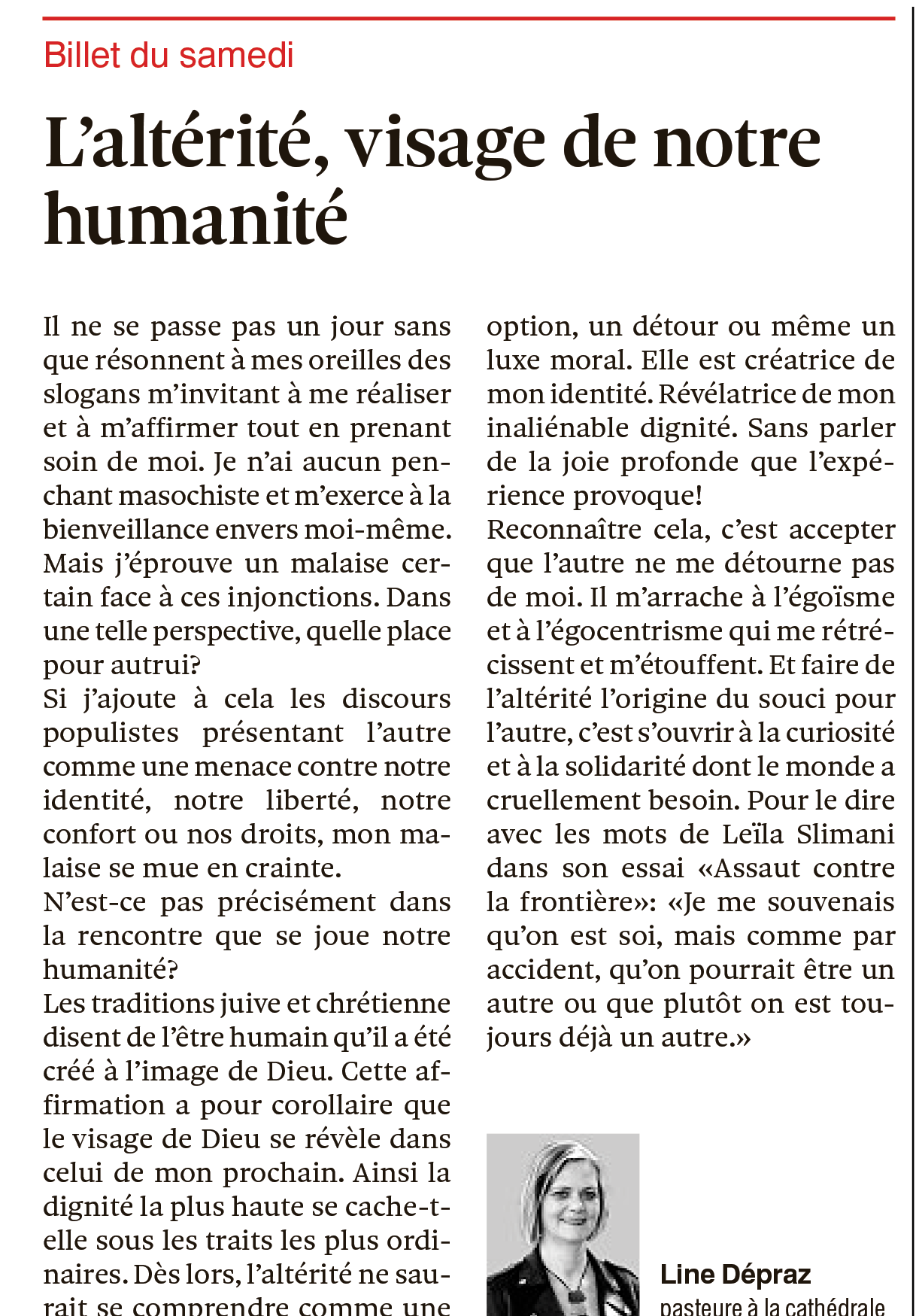 Retrouvez le billet spirituel publié dans le journal 24heures du 25 avril 2026.