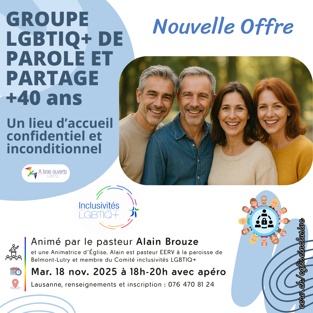 Un moment d’échange 💬 bienveillant entre personnes LGBTIQ+ de plus de 40 ans : Parce qu’il n’y a pas d’âge pour se comprendre et se soutenir. Partager nos vécus, nos questionnements, nos parcours et créer du lien dans la confiance, l’écoute et la bienveillance.