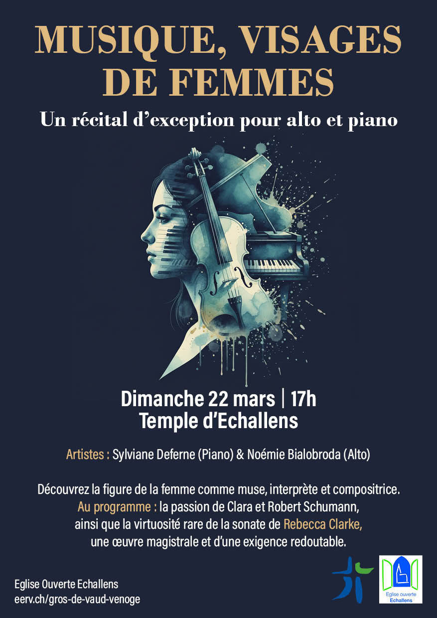 A 17h au temple d’Echallens, c’est un récital réunissant deux musiciennes exceptionnelles de renommée internationale que nous aurons le privilège d’écouter.