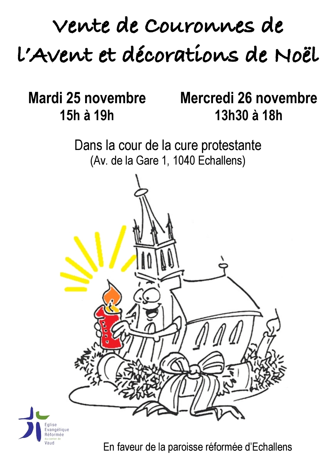 La vente se déroulera le mardi 25 et le mercredi 26 novembre 2025 à la salle de paroisse à l'Avenue de la Gare 1 à Echallens