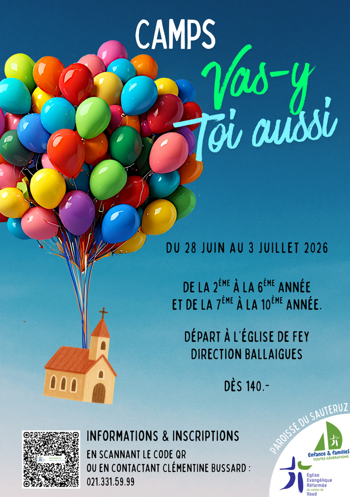 Départ : Dimanche 28 juin à 10h00 à l’église de Fey. Culte d’envoi sur le thème du camp, départ en car.