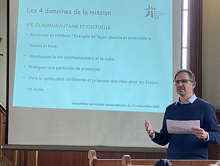 Le dimanche 23 novembre 2025, après le culte célébré par Margaret Agassis dans l'église de Chevilly, les paroisses de Veyron-Venoge et de La Sarraz ont vécu conjointement une Assemblée de paroisse extraordinaire sur le projet “Église 29”.