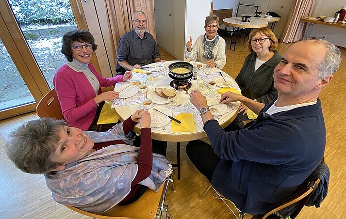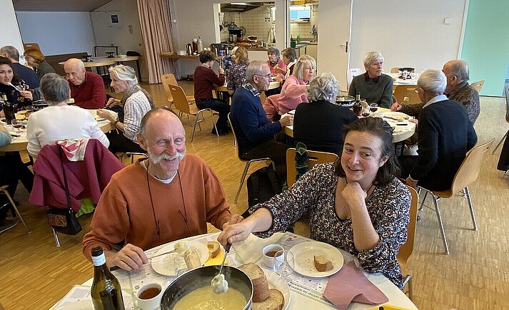 Puis, pour celles et ceux qui le souhaitaient, dans une ambiance plus que conviviale, nous avons partagé des fondues dans la salle communale du village, lesquelles ont été préparées avec soin et amour par les membres de la paroisse de La Sarraz.