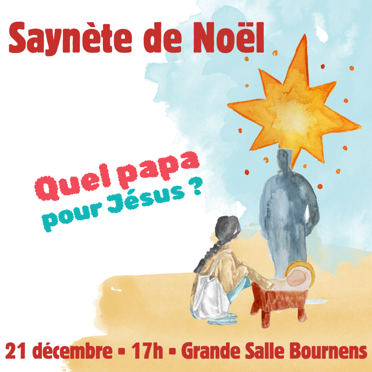 La paroisse de Vufflens-la-Ville vous propose une saynète de Noël sur le thème “Quel papa pour Jésus?” à la grande salle de Bournens le 21 décembre à 17 heures.