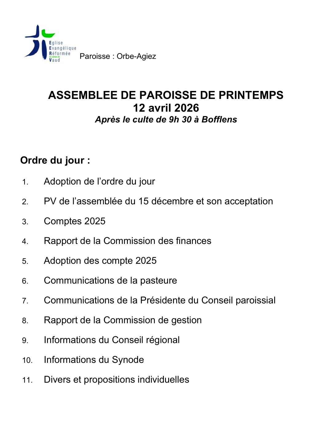 Après le recueillement, nous vivrons l'Assemblée paroissiale.