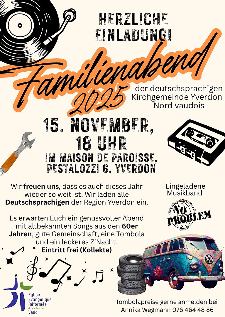 Deutschsprachiger Musikabend mit leichtem Abendessen und Tombola.