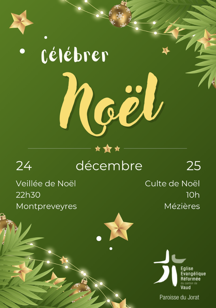 Jeudi 25 décembre, 10h, Mézières : culte de Noël avec cène.