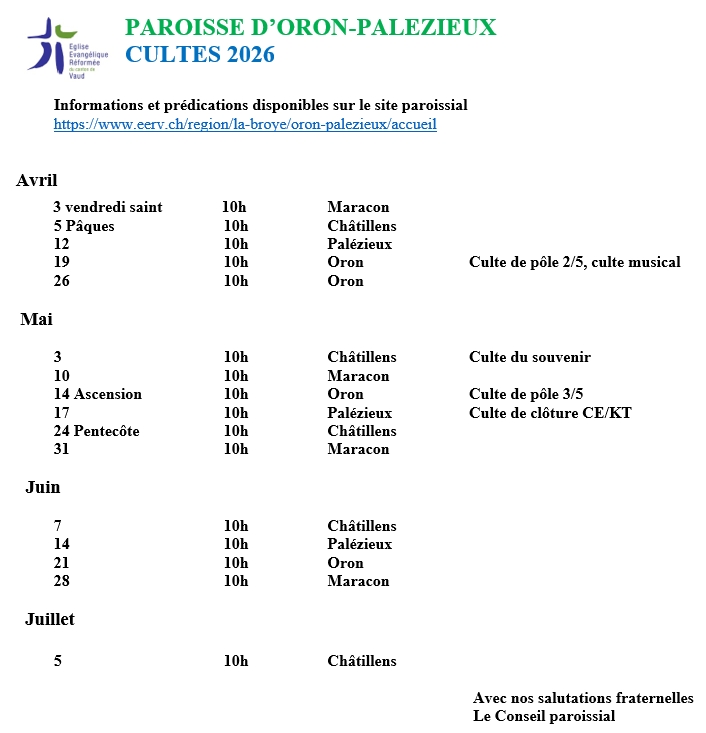 Les prochains cultes