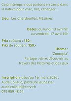 Camp d'enfants 6 - 10 ans du 13 au 17 avril 2026