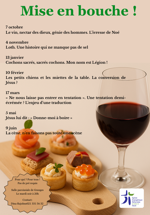 Proposé par Dina Rajohns, pasteure à Granges et environs.