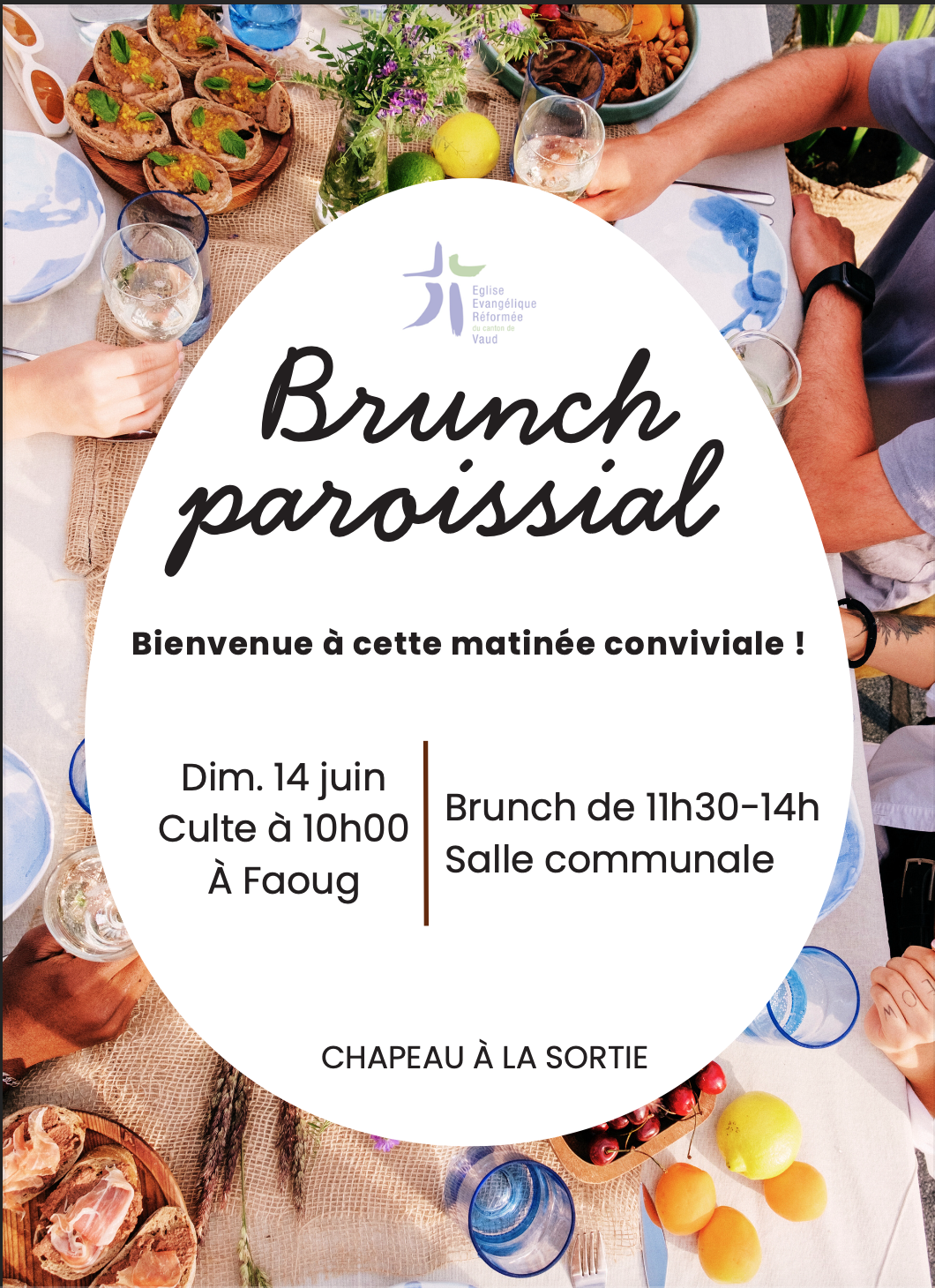 Dimanche 14 juin culte à 10h00 à l'église de Faoug