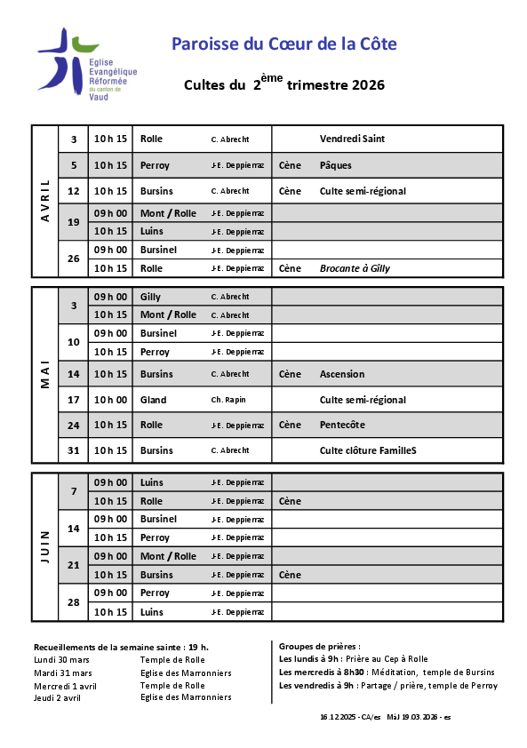 10 h 15 Rolle J-E. Deppierraz Cène