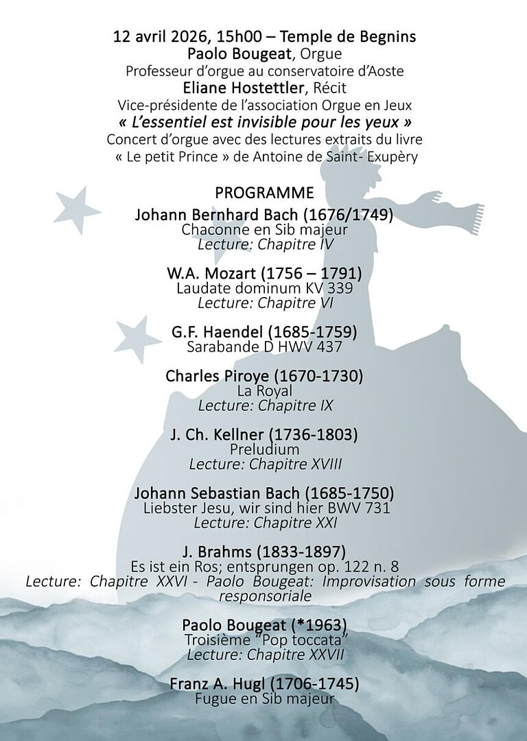 Concert d'orgue avec des lectures extraites du livre “Le petit Prince” d'Antoine de Saint-Exupéry
