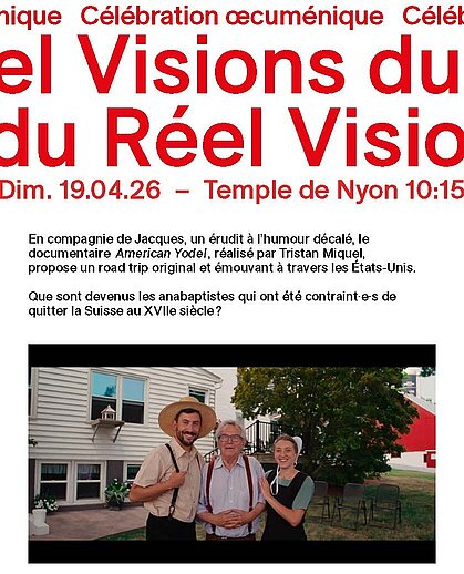 Visions du Réel attribue depuis plusieurs années un prix interreligieux dans la Compétition Internationale Longs Métrages pour un film qui met en lumière les questions du sens de la vie. C’est dans cette perspective que les paroisses réformée, catholique et évangélique de Nyon convient chacune et chacun, quelle que soit son appartenance confessionnelle, religieuse ou philosophique, à une célébration dominicale.