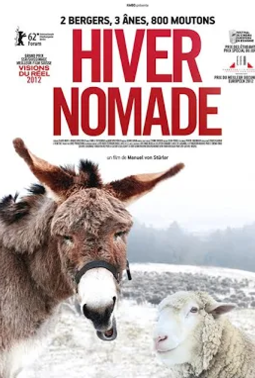 Hiver nomade réalisé par Manuel von Stürler une transhumance dans la Broye vaudoise avec Carole, Pascal, 3 ânes, 4 chiens et 800 moutons.