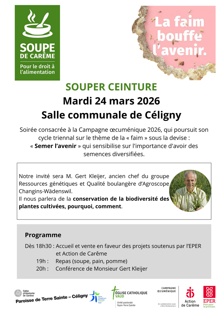 Soirée consacrée à la Campagne œcuménique 2026, qui poursuit son cycle triennal sur le thème de la « faim » sous la devise : « Semer l’avenir » qui sensibilise sur l'importance d'avoir des semences diversifiées.