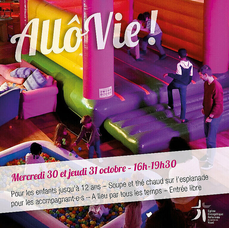 Animations pour les enfants entrent 4 et 12 ans (parcours "même pas peur", château gonflable, bricolage, piscine à boules). A leur arrivée devant l'église, les enfants sont accompagnés par des jeunes pour faire le parcours. Les accompagnants restent à l'extérieur et peuvent consommer de la soupe à la courge et du thé. En cas de mauvais temps, nous serons dans la salle de paroisse. Cette proposition de l'Eglise Réformée du canton de Vaud (EERV) souhaite offrir une étape accueillante et pleine de vie lors de la fête d'Halloween en ouvrant les portes d'une de ses églises. Galerie photo 2023