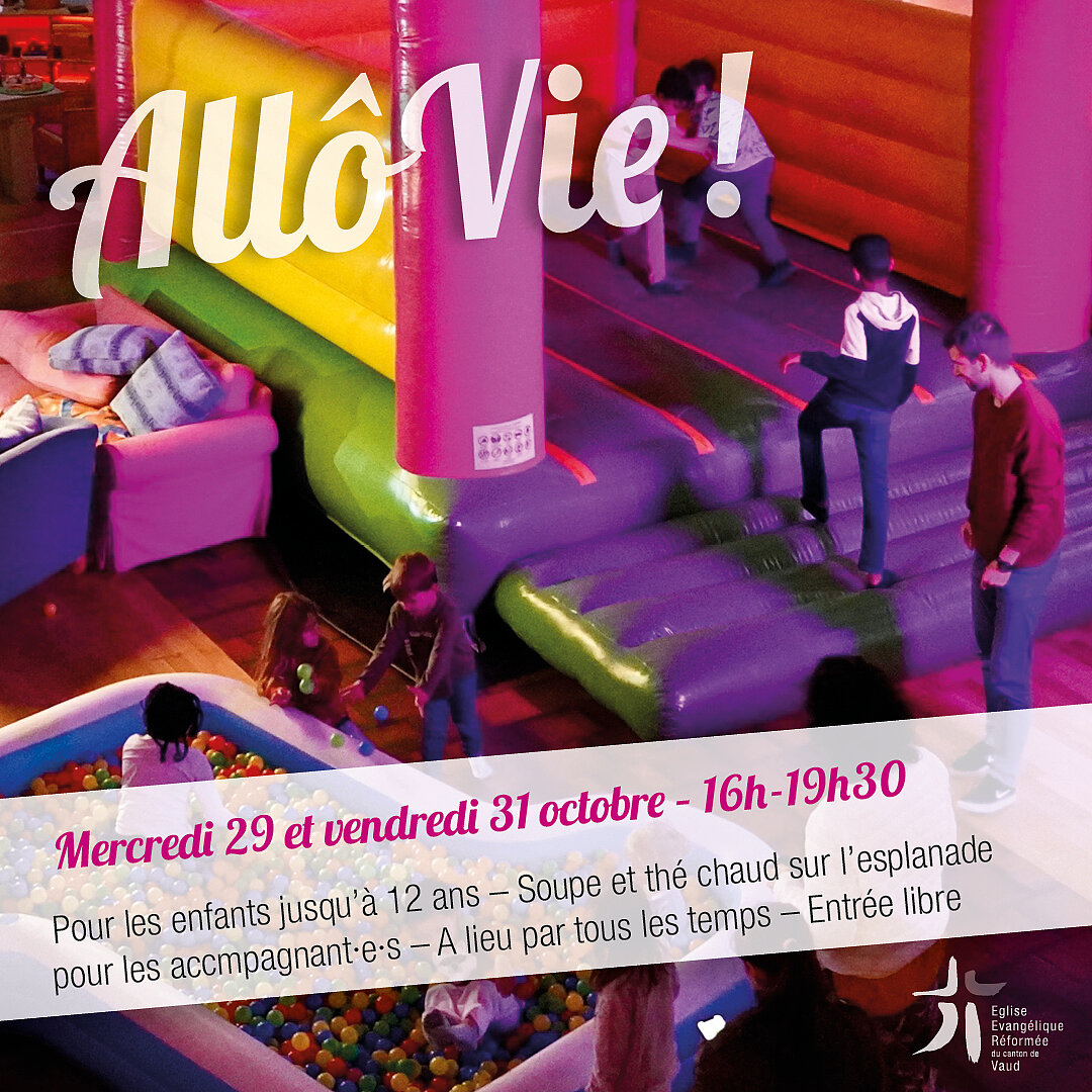 Animations pour les enfants entrent 4 et 12 ans (parcours "même pas peur", château gonflable, bricolage, piscine à boules). A leur arrivée devant l'église, les enfants sont accompagnés par des jeunes pour faire le parcours. Les accompagnants restent à l'extérieur et peuvent consommer de la soupe à la courge et du thé. En cas de mauvais temps, nous serons dans la salle de paroisse. Cette proposition de l'Eglise Réformée du canton de Vaud (EERV) souhaite offrir une étape accueillante et pleine de vie lors de la fête d'Halloween en ouvrant les portes d'une de ses églises. Galerie photo 2024