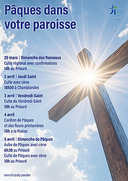 Le chemin se poursuivra dans le recueillement du Vendredi Saint à Forel, pour une pause spirituelle nécessaire à 10h. Enfin, le Dimanche de Pâques, c'est à Savigny que nous éclaterons de joie à 10h pour célébrer la Résurrection. Ce culte avec cène sera le point d'orgue de notre semaine, un moment de partage et de lumière où chacun trouve sa place. Venez nombreux pour témoigner de cette espérance qui nous unit !