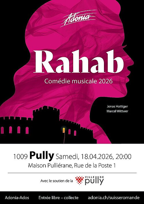 Vivez un moment d'exception le samedi 18 avril 2026 à la Maison Pulliérane. Près de 70 jeunes talents de la troupe Adonia-Ados font escale dans notre région pour revisiter l'histoire biblique de Rahab à travers un spectacle musical vibrant et moderne.