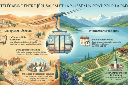 Et si nous montions ensemble dans une télécabine symbolique pour relier les réalités de Jérusalem et de la Suisse, et ouvrir un espace de dialogue, de réflexion et d’espérance ?