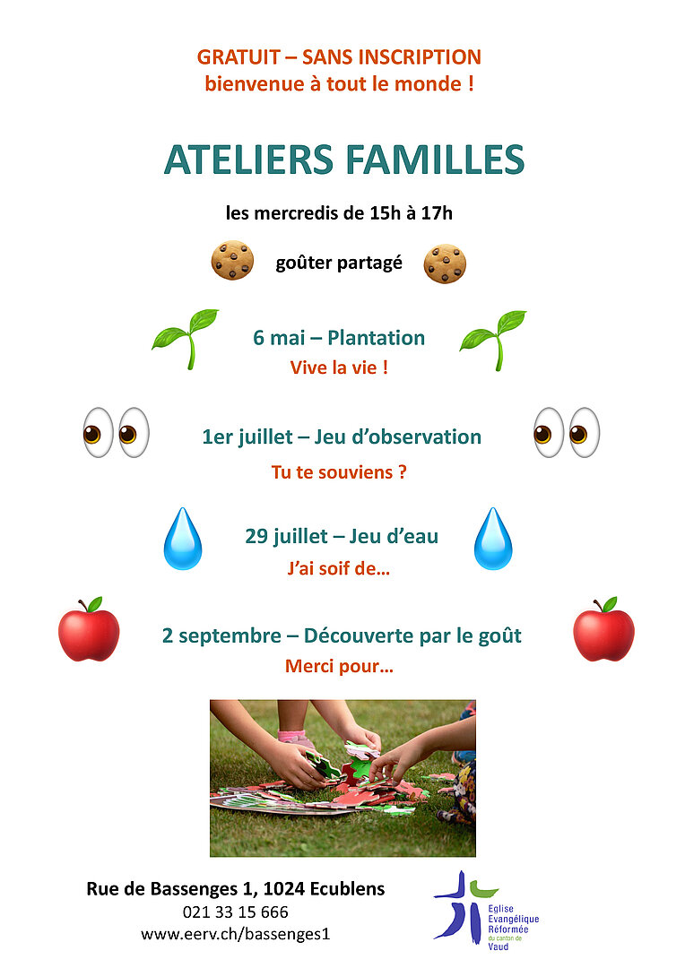 Après une première belle rencontre, 4 propositions d'ateliers familleS pour toutes et tous les mercredis de 15h à 17h. Bienvenue à tous et toutes pour des découvertes, du partage, des jeux.