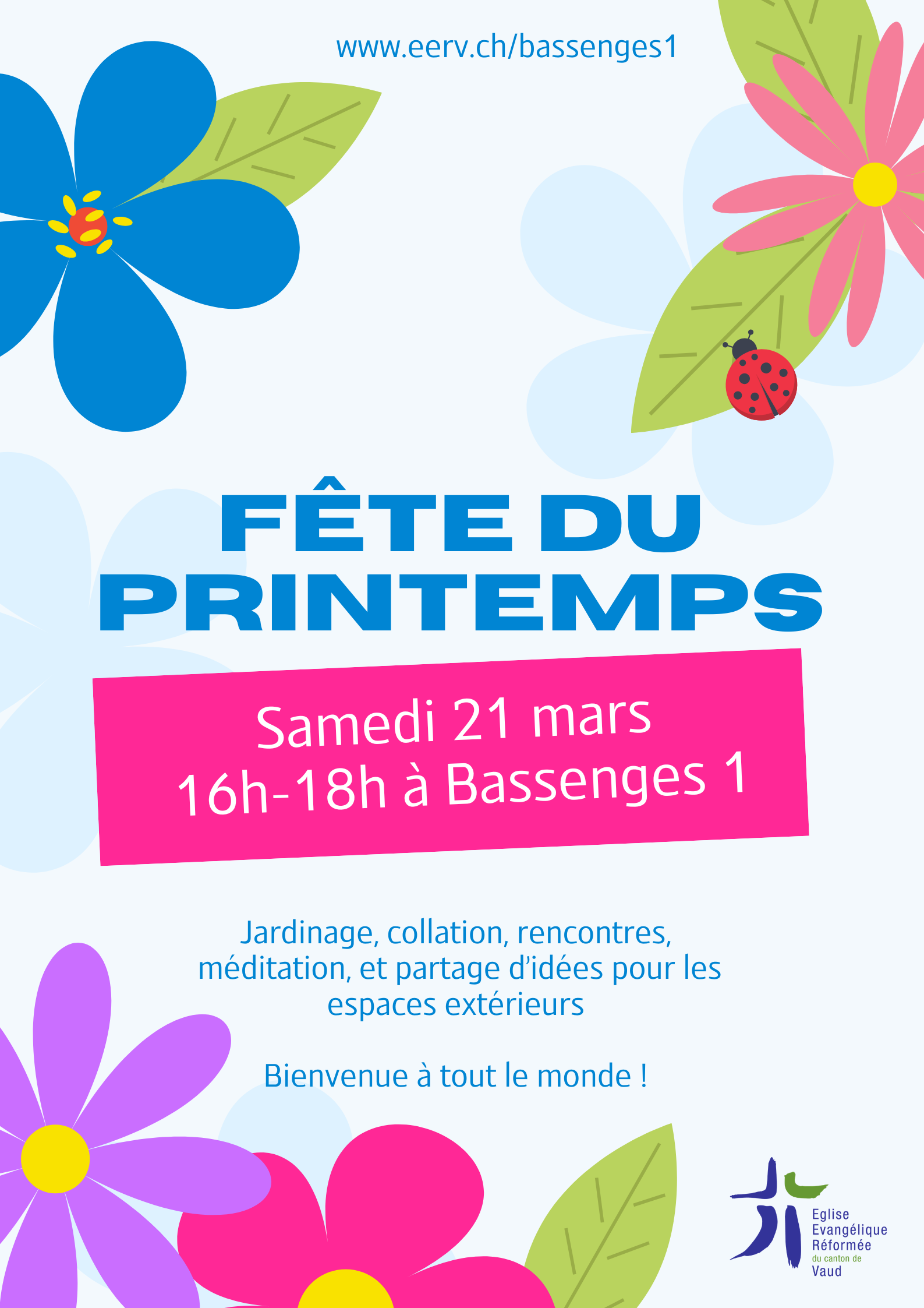 Venez fêter l'arrivée du printemps à Bassenges 1 (1024 Ecublens) le samedi 21 mars, de 16h à 18h.