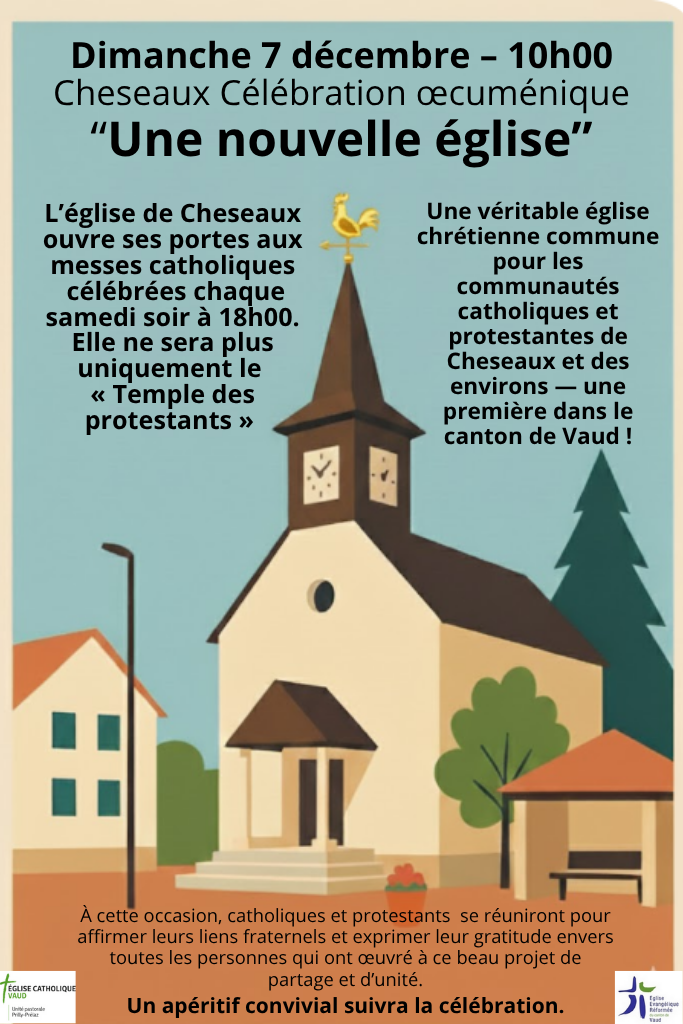 Celui-ci s’est désormais ouvert aux messes catholiques, célébrées chaque samedi soir à 18h00. Il ne sera donc plus seulement le « Temple des protestants », mais deviendra une véritable église chrétienne commune aux communautés catholiques et protestantes de Cheseaux et des environs — une première dans le canton de Vaud !
