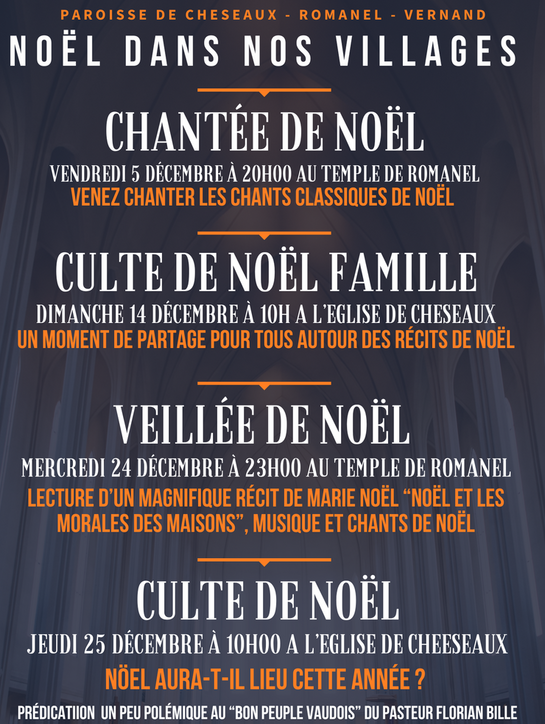Calendrier des événements autour de Noël dans les villages de Cheseaux et Romanel