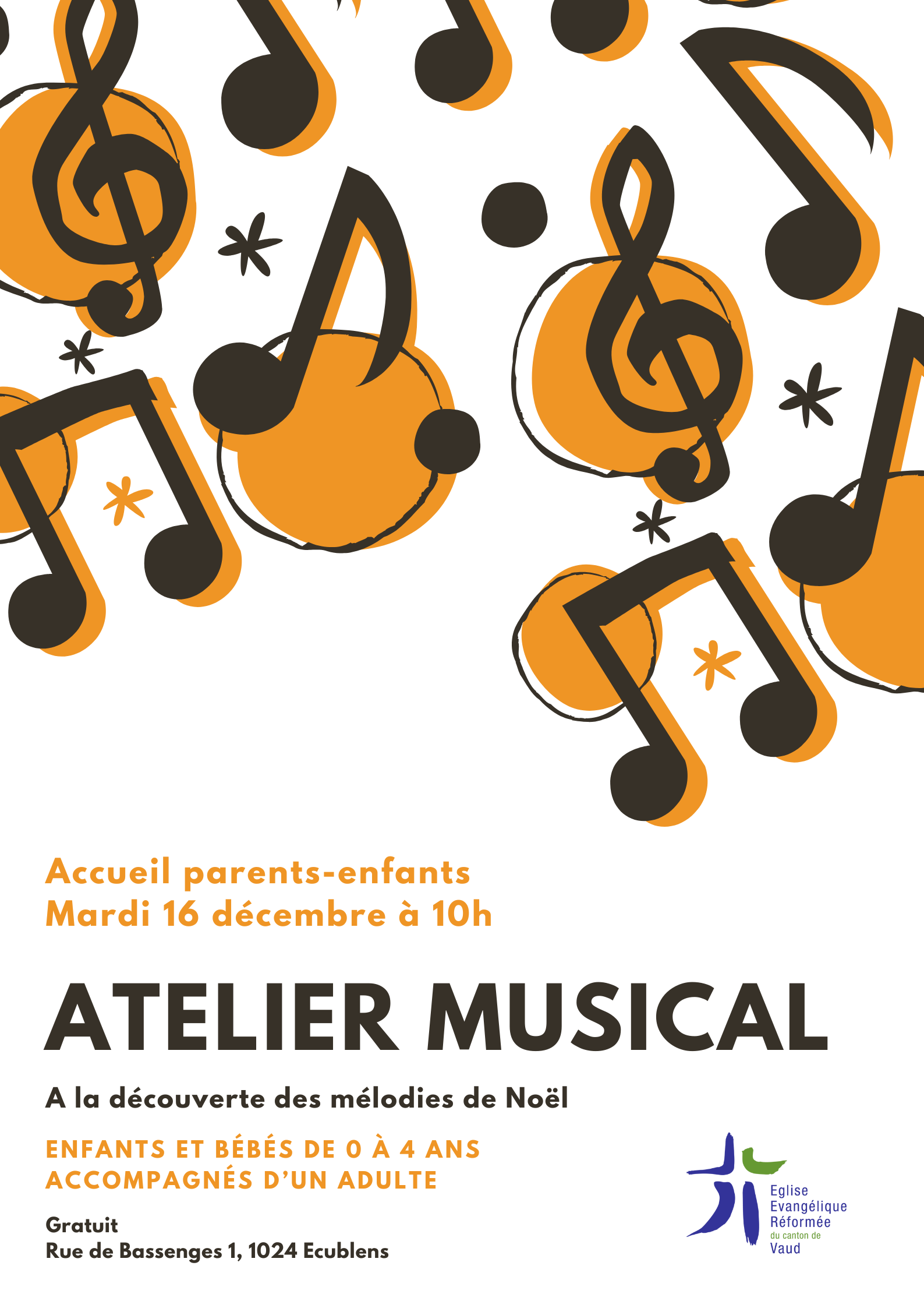 Le mardi 16 décembre à 10h, dans le cadre des accueils parents-enfants de 0 à 4 ans à Bassenges 1, Réjane vient animer un atelier d'éveil musical avec des mélodies de Noël au piano et avec instruments de percussion. Bienvenue aux parents et à leurs petits.