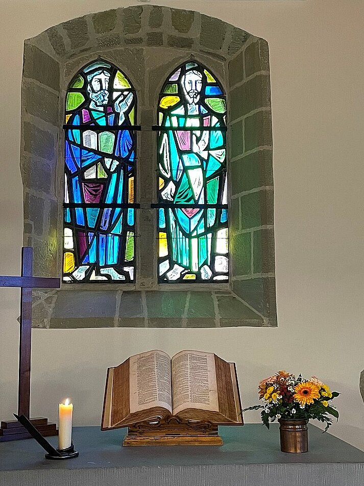 120 places avec des bancs + quelques places sur la galerie. Accès en chaise roulante (rampe). Hors cultes, l'église est ouverte au public tous les jours de 8h à 18h. Bienvenue à vous qui souhaitez y faire halte !