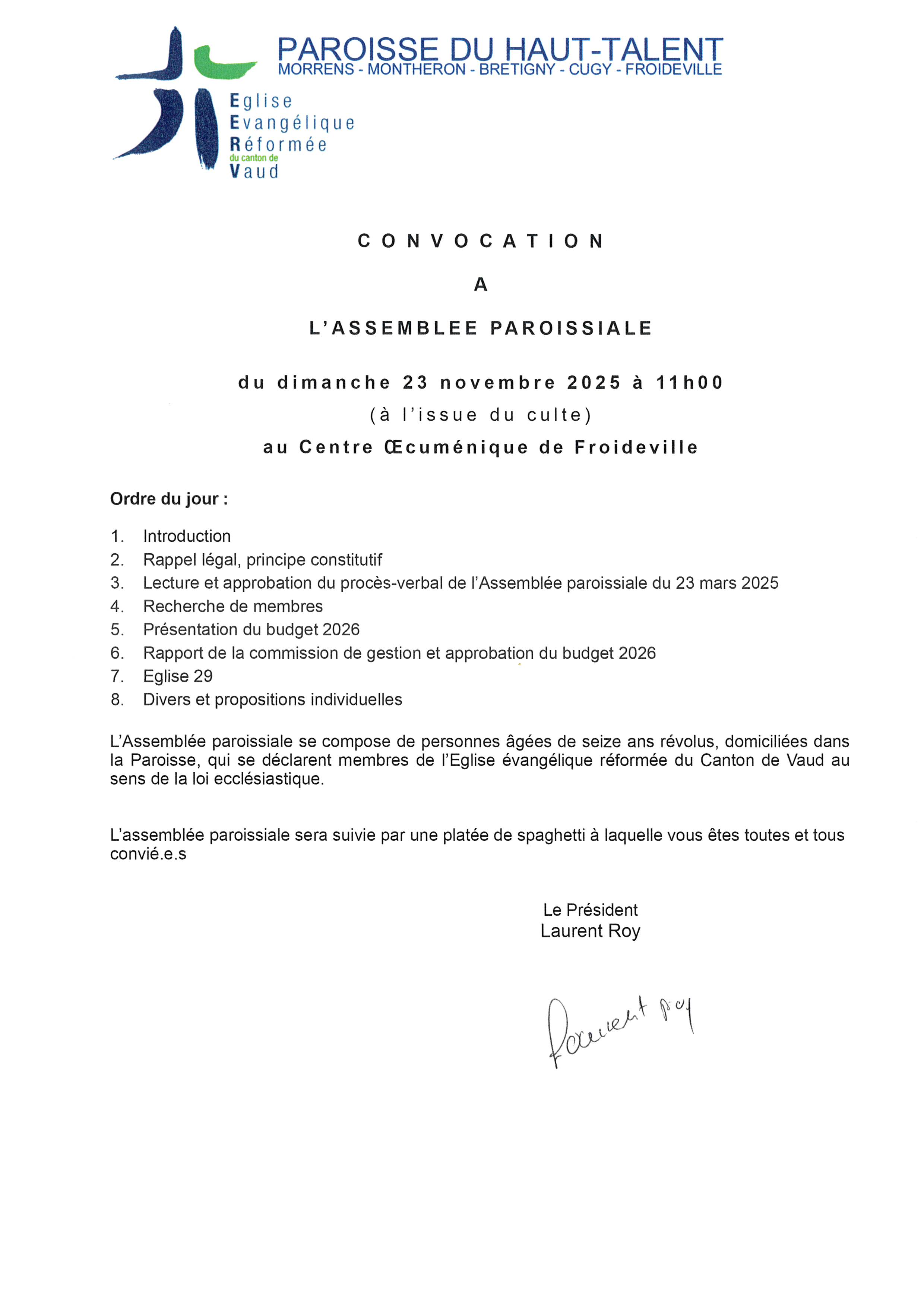 L'Assemblée sera suivie d'un plat de spaghettis