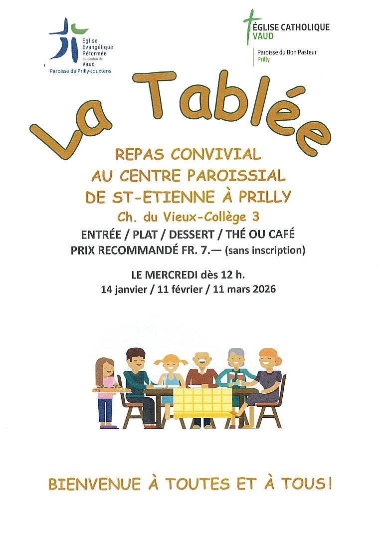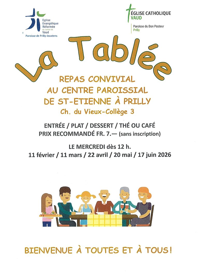Cette invitation, adressée à tous les habitant-es de Prilly, vous permet de partager un repas, une fois par mois, mais aussi un moment d'amitié, d'écoute et de partage.