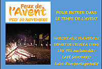 À Pizy, le 30 novembre. Marche aux flambeaux départ de l’école à 17h40. 18h feu au lieu dit "Café Savoyard” suivi d'un partage festif