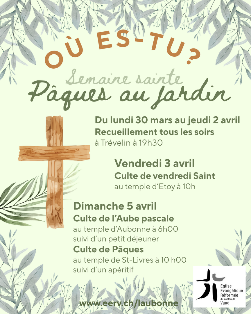 Dès les premières lueurs du jour, entrons ensemble dans la joie de la résurrection. Une collation sera servie à la sortie afin de prolonger ce moment de partage.