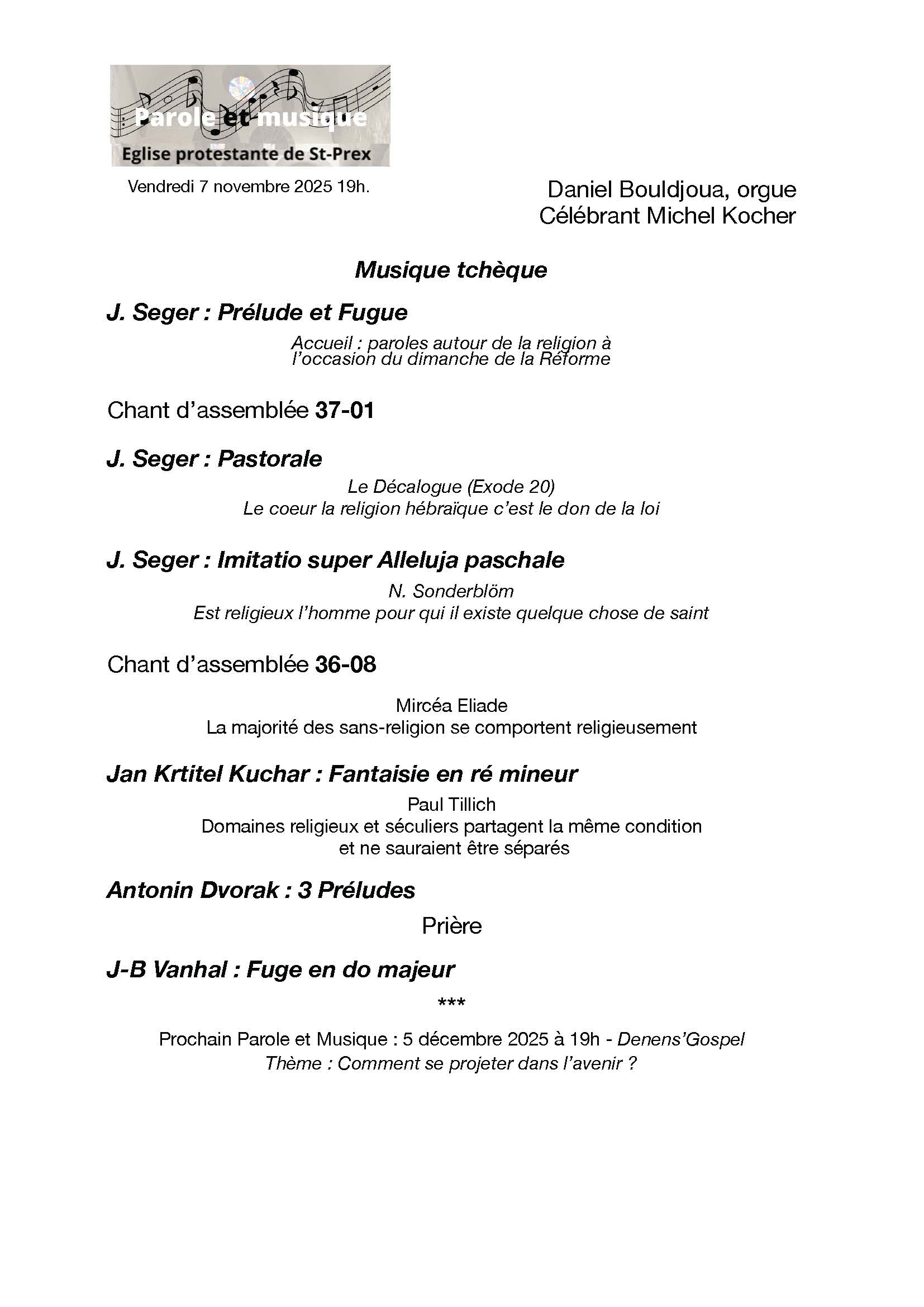 Parole&Musique reprend le vendredi 7 novembre, 19h à St Prex.