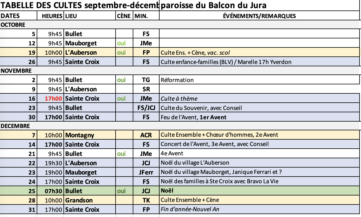 Dimanche 19 octobre, culte ensemble à 10h au temple de l'Auberson