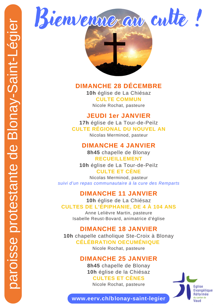 Retrouvez le détail des cultes et recueillements à fin décembre et pour le mois de janvier !