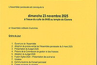 Dimanche 23 novembre à 9h culte suivi de l'Assemblée paroissiale