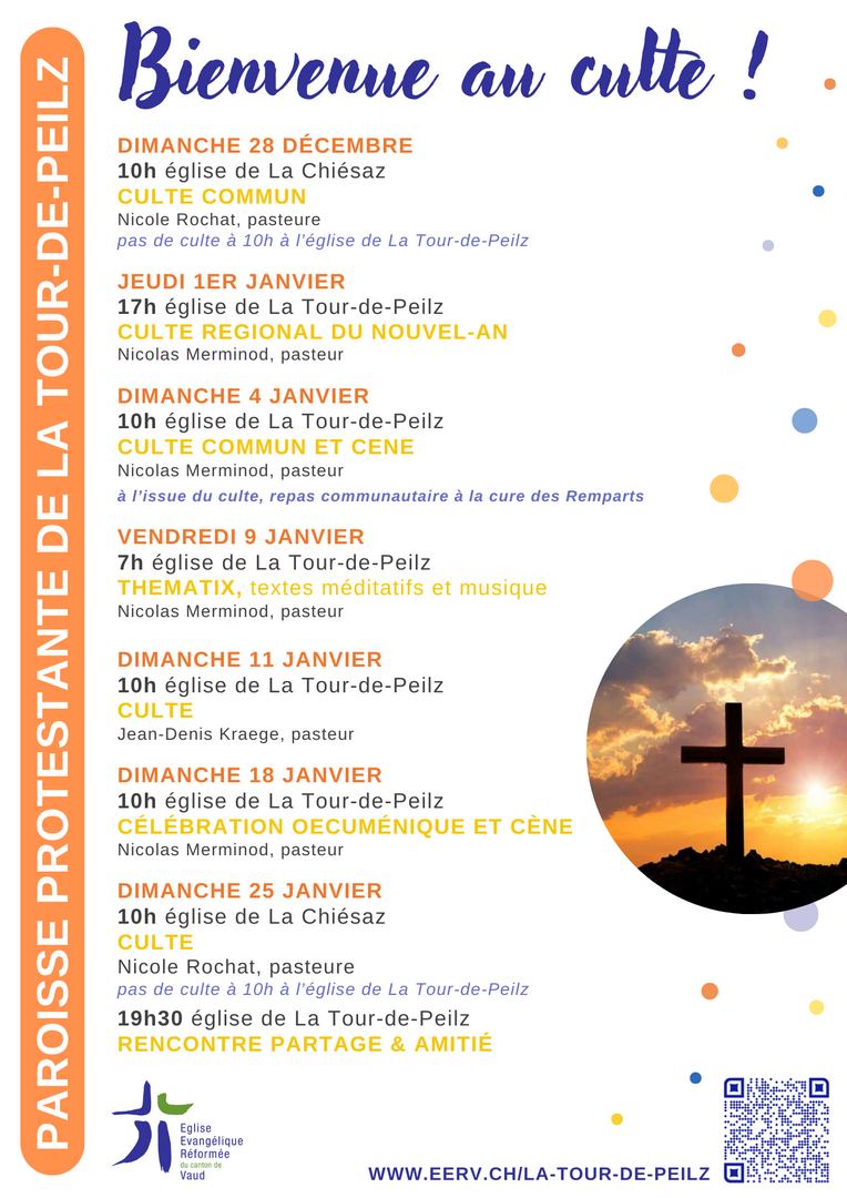 Toutes les dates, heures et lieux des cultes fin décembre et en janvier 2026